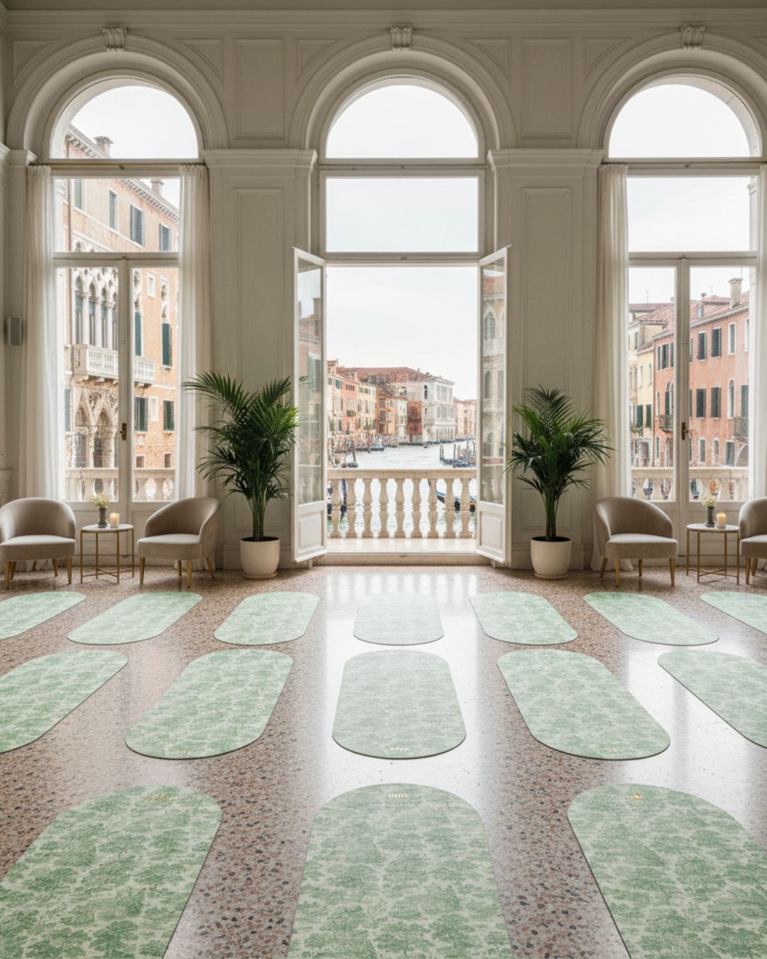 - Vos exercices au sol (Pilates, yoga, renforcement….) ont trouvé leur meilleur compagnon : le tapis ovale athlē, imprimé motif à l'ancienne !